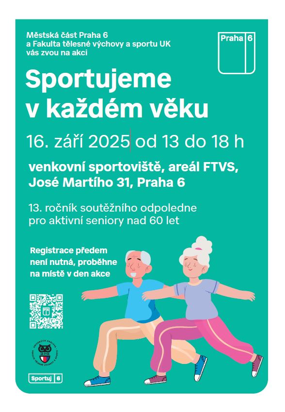 Městská část Praha 6 a FTSV UK zvou všechny aktivní seniory na 13. ročník sportovně soutěžního odpoledne Sportujeme v každém věku. Aktivity jsou určeny seniorům nad 60 let.