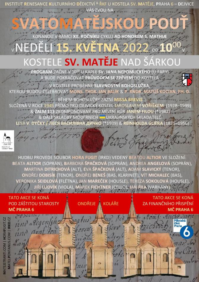 Zveme Vás na tradiční SvatoMatějskou pouť do kostela sv. Matěje nad Šárkou.