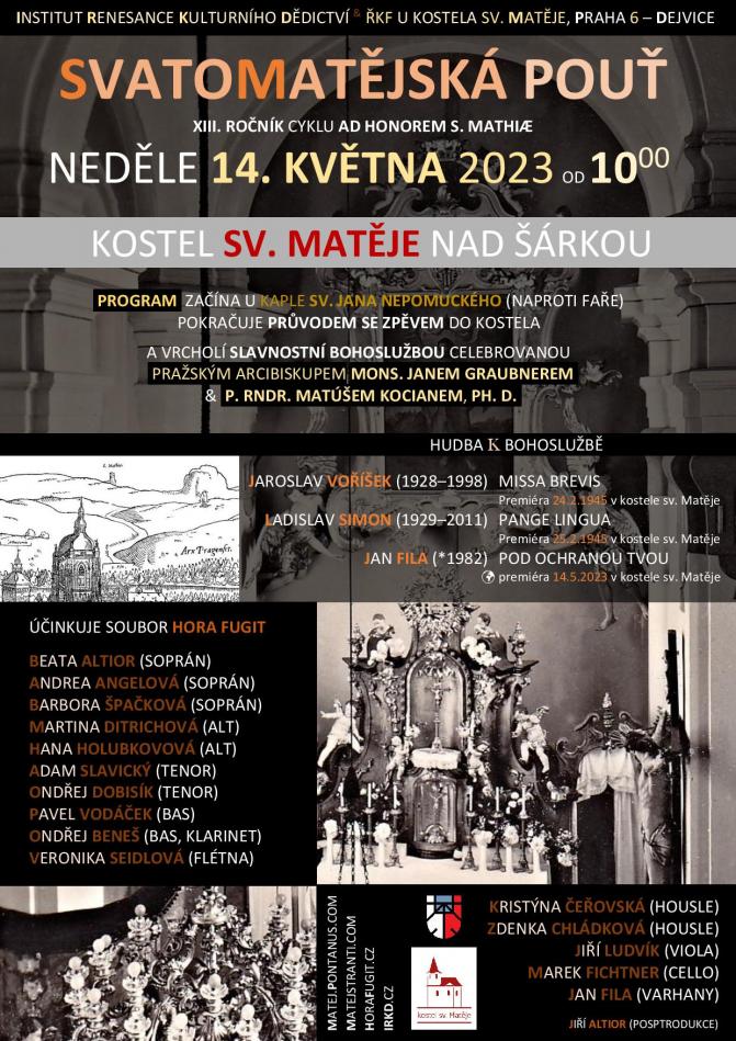 Zazní Missa brevis Jaroslava Voříška (1928-1998) a nově také Pange Lingua od Ladislava Simona (1929-2017), oba mladí autoři, coby studenti Pražské konzervatoře zkomponovali své skladby ve válečném roce 1945 pro kostel sv. Matěje. Soudobý skladatel Jan Fila (*1982), který působí také jako varhaník, přidává k programu také jednu ze svých duchovních skladeb, Pod ochranu tvou.