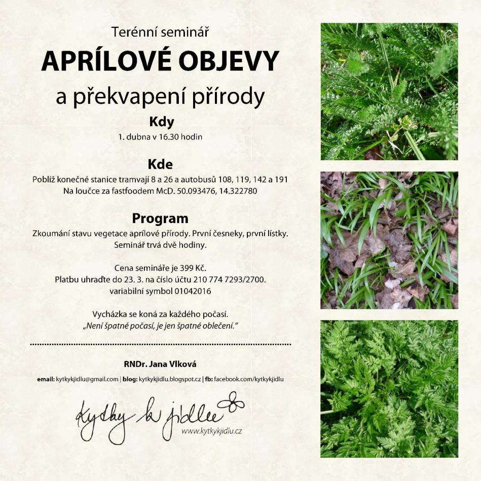 První rašící byliny pro nedočkavé kytkožrouty možná první česneky, první lístky polníčku a další překvapení Tipy a triky na použití v kuchyni. Ekologické minimum. Seminář trvá dvě hodiny.