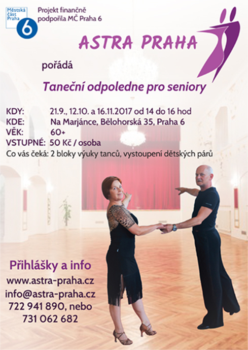 Taneční klub Astra Praha Vás srdečně zve již k druhému odpolednímu tanci (další termín 16.11.2017) - vždy od 14 do 16 hodin.