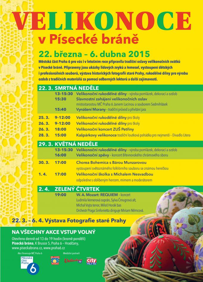 Ve středu 1. dubna v 17 hodin vystoupí Michal Nesvadba se svým velikonočním pořadem pro děti v Písecké bráně (K Brusce 5, Praha 6). Vstup volný.