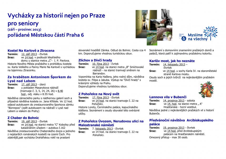 Vycházky pořádané Městskou částí Praha 6 v období září - prosinec. Není třeba se předem přihlašovat.