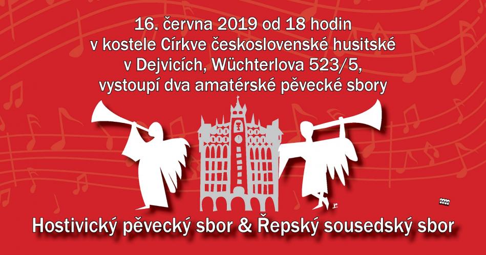 Dne 16. 6. 2019 od 18 hodin v kostele Církve československé husitské v Dejvicích, Wuchterlova 523/5, se svým programem vystoupí dva amatérské pěvecké sbory, Hostivický pěvecký sbor a Řepský sousedský sbor.