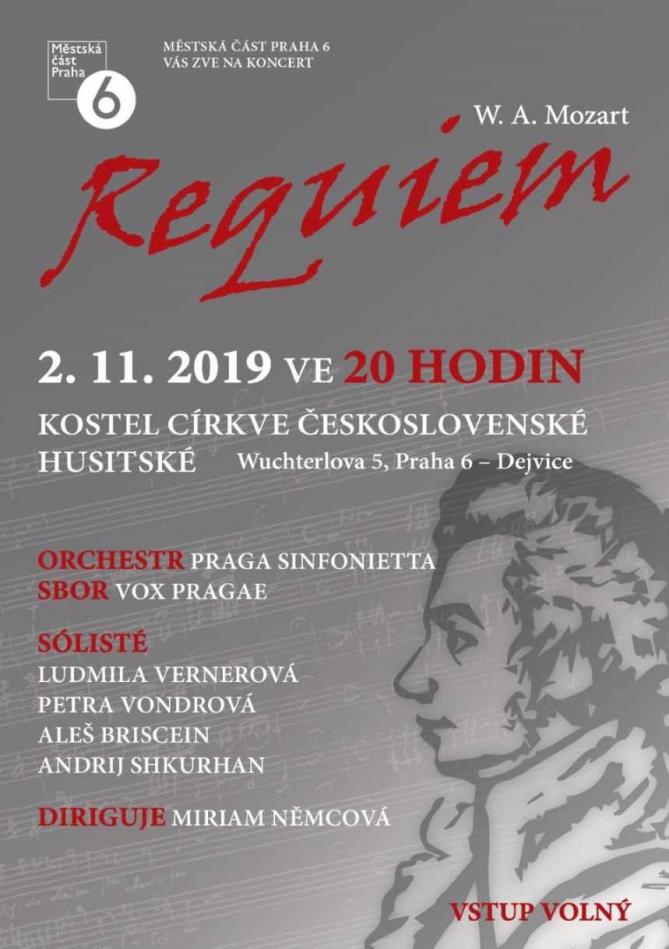 Městská část Praha 6 vás zve na koncert orchestru Praga Sinfonietta a smíšeného pěveského sboru VOX Pragae v sobotu 2. listopadu 2019 od 20.00 hodin v kostele církve Československé husitské ve Wuchterlově ulici v Dejvicích.