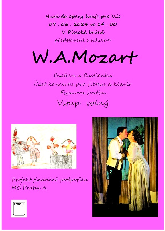 Začínáme zhruba čtvrthodinovou operou Bastien a Bastienka, hráváme ji pro děti s loutkami. W. A. Mozart ji údajně psal ve věku 10 let. Pak uslyšíte instrumentální předěl – část koncertu pro flétnu.