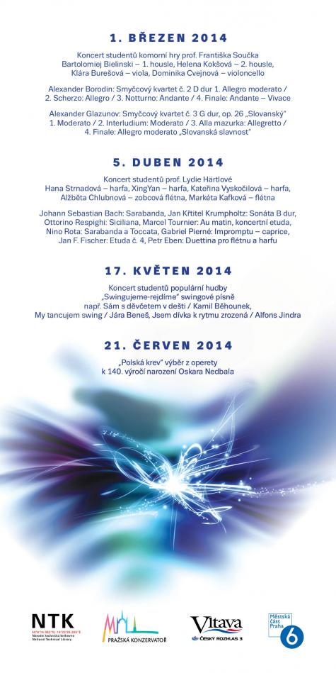 Starostka městské části Praha 6 Marie Kousalíková a Václav Hudeček Vás zvou na koncert studentů Pražské konzervatoře.