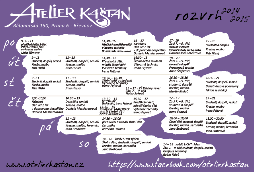 Výtvarné kurzy pro děti od dvou let, předškoláky, školáky, studenty, dospělé a seniory nabízíme v KC Kaštan - Atelier Kaštan