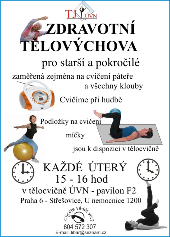 Rehabilitační cvičení při hudbě, určené ženám i mužům všeho věku, při kterém se procvičují, protahují a posilují všechny klouby a uvolňuje páteř. Cvičí se na podložkách (zapůjčujeme), u ribstolí, s míčky, s posilovacími gumami, flexi-bary apod.