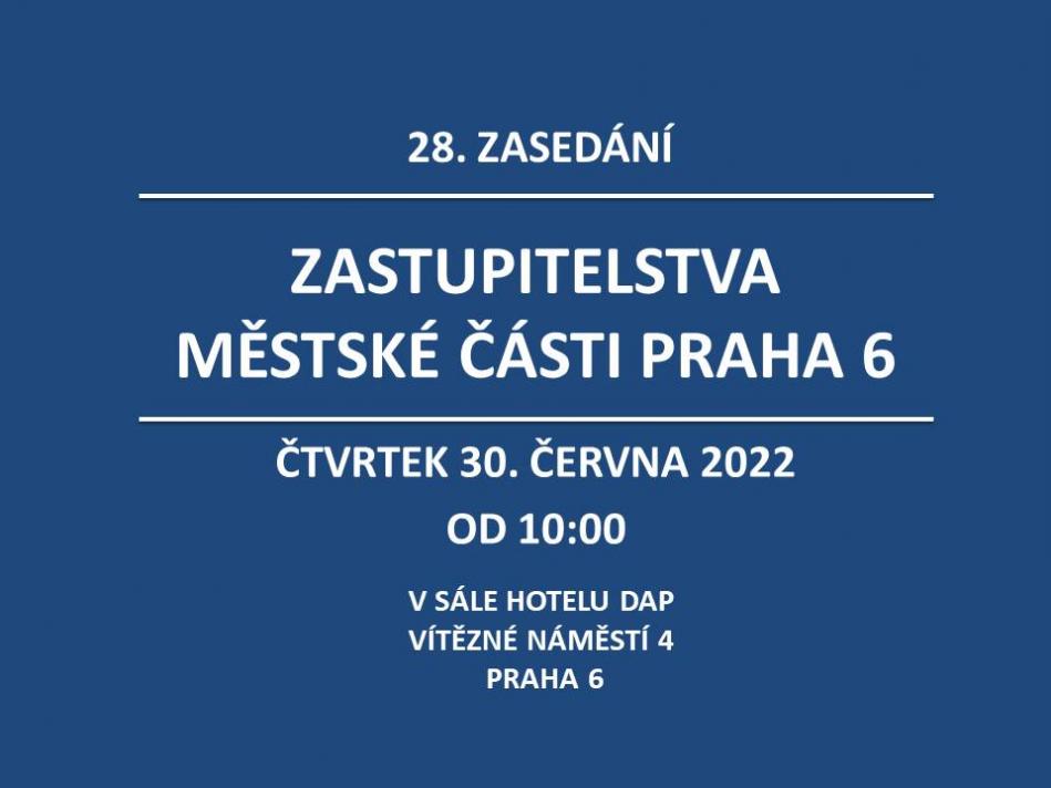 Ve čtvrtek 30. června 2022 se od 10:00 v kongresovém sálu hotelu DAP uskuteční 28. zasedání Zastupitelstva městské části Praha 6.