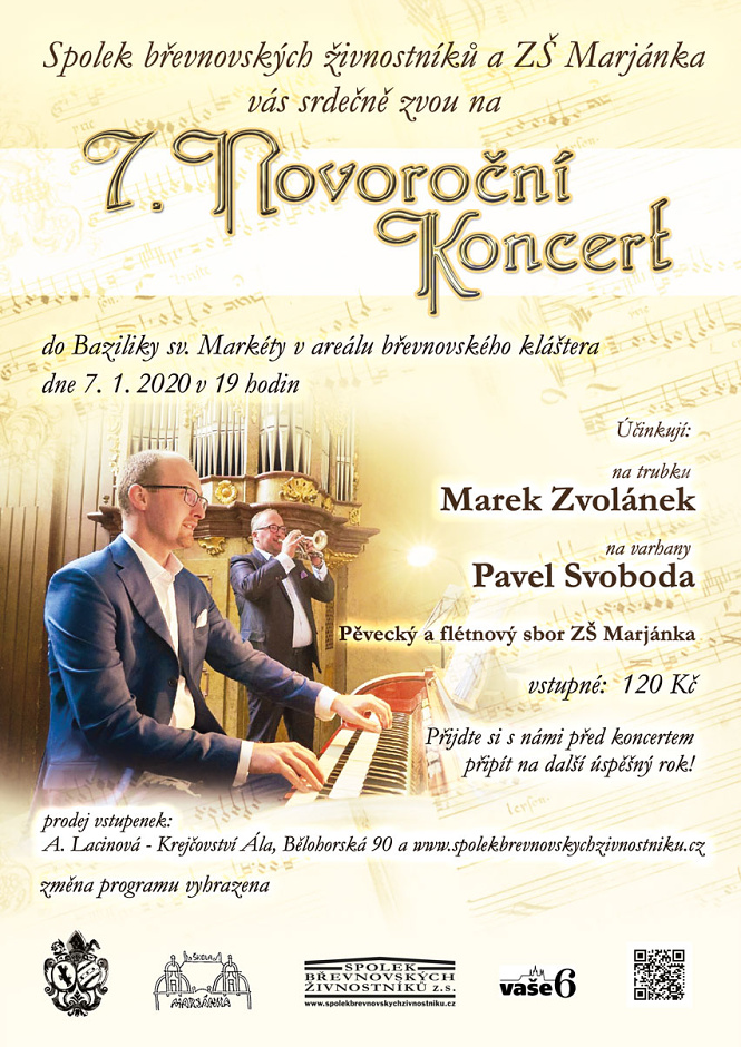 Spolek břevnovských živnostníků pořádá v úterý 7. 1. 2019 od 19.00 hodin již sedmý rok Novoroční koncert v bazilice sv. Markéty v Břevnovském klášteře.