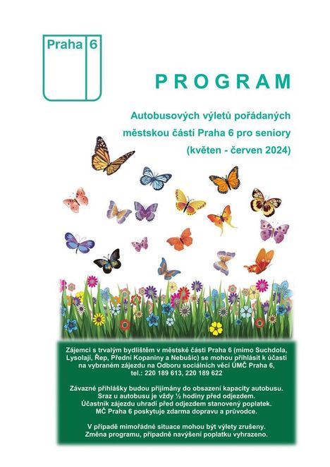 Program autobusových výletů pořádaných městskou částí Praha 6 pro seniory (květen - červen 2024)