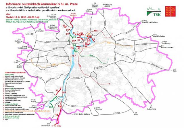 Technická správa komunikací Praha právě vydala na čtvrtek 13. června 2013 k 6:00 hodině zatím poslední mapu uzavírek. Otevírá se kompletně Papírenská ulice. Stále uzavřena ulice: Roztocká, Pod Paťankou, Mlýnská. STÁHNĚTE SI MAPU - ODKAZ UVNITŘ ČLÁNKU.
