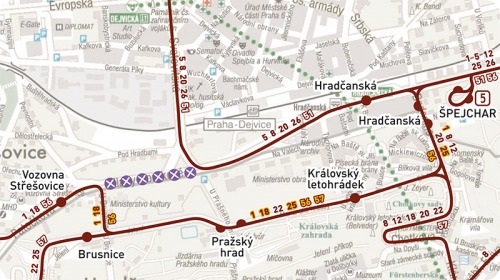 UVNITŘ ČLÁNKU INFORMAČNÍ LETÁK S MAPOU ZMĚN. Z důvodu rekonstrukce tramvajové trati v ulici Milady Horákové a pokračujících prací při výstavbě Městského okruhu bude od přibližně 0.30 hodin v sobotu 30. března 2013 do přibližně 0.30 hodin v sobotu 29. června 2013 obousměrně přerušen tramvajový provoz v ulici Milady Horákové (od křižovatky s ulicí U Brusnice po křižovatku s ulicí Svatovítskou).