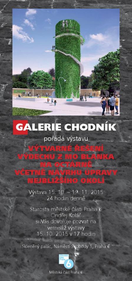 Ve čtvrtek 15. října se od 17:00 ve Skleněném paláci (Náměstí Svobody 1, Praha 6) uskuteční slavnostní vernisáž výstavy výtvarných řešení výdechu z tunelu Blanka Na Octárně.