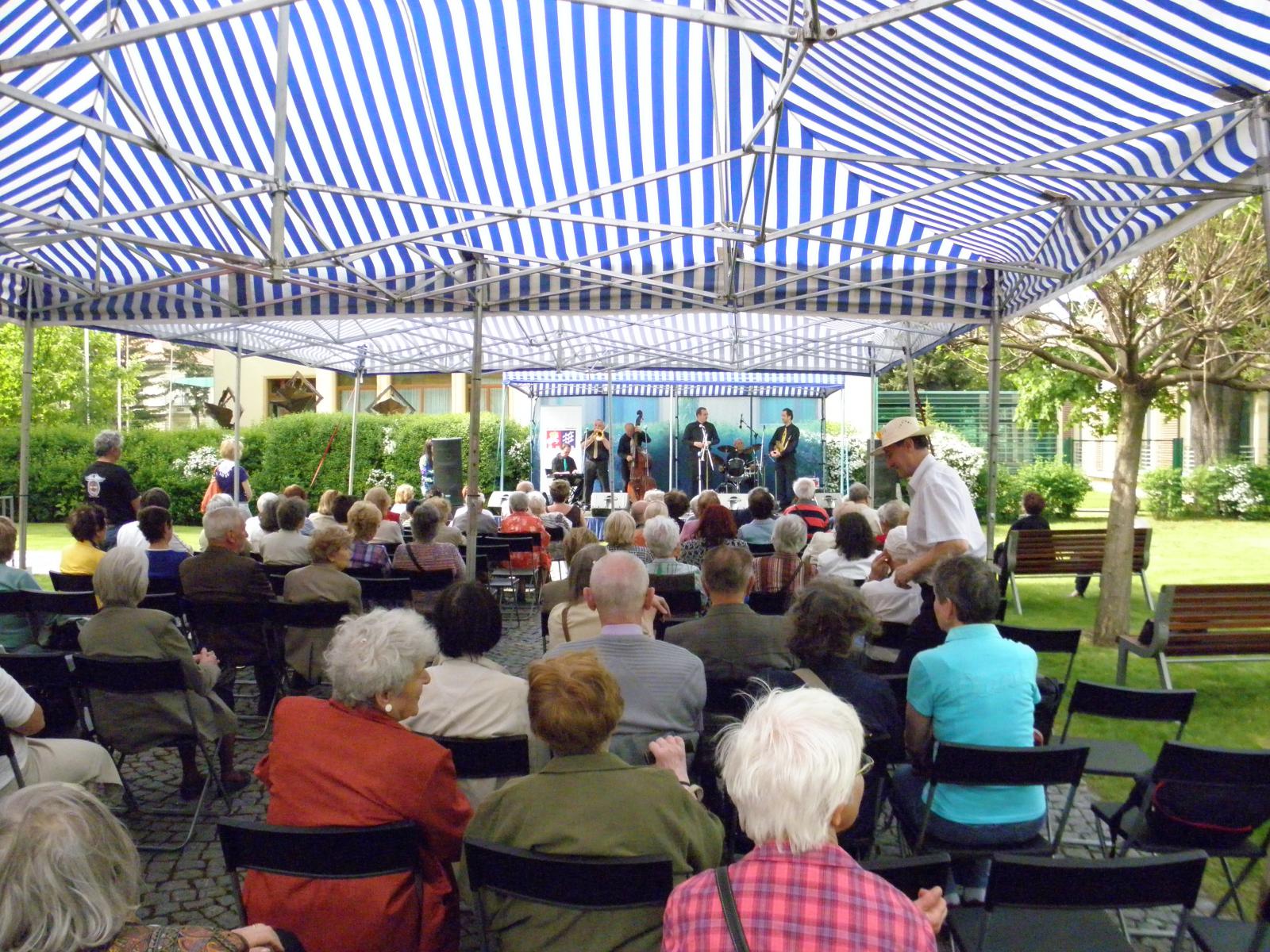 V minulém týdnu proběhlo další tradiční kulturní odpoledne pro seniory v Pelleově vile. Na hudební vystoupení části skupiny Harmcore Jazzband orchestru Gymnázia Jana Keplera a Orchestru Radima Linharta se přišli podívat senioři z Prahy 6. Zveme Vás na pokračování, které je plánováno na čtvrtek 6. 6. 2012 od 14 hodin.
