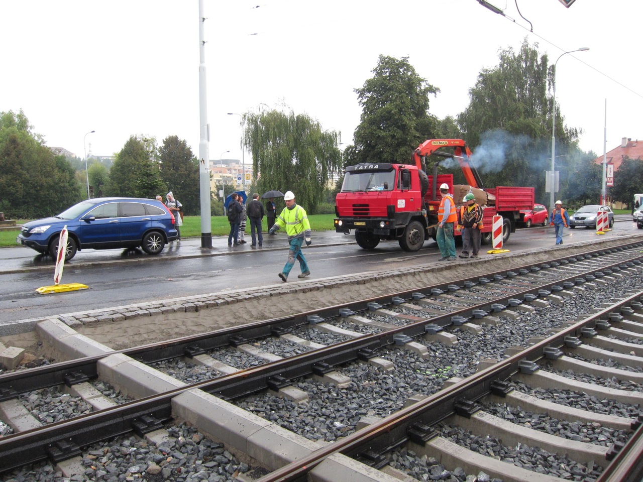Hlavními dvěma problémy zpoždění podle něj byly jednak předem nezjištěné silnoproudé kabely v horní části smyčky na Vypichu a betonové kvádry v dolní části tratě, které se musely místo frézování rozbíjet sbíječkami.