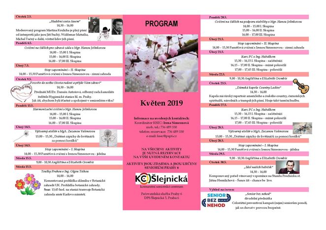Program komunitního centra Šlejnická na Květen 2019
