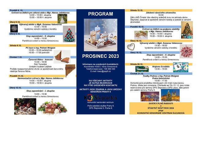 Program komunitního seniorského centra Šlejnická na Prosinec 2023