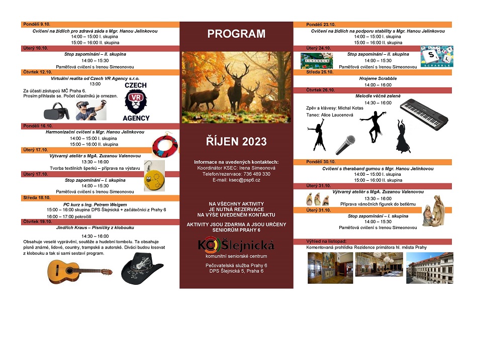 Program komunitního seniorského centra Šlejnická na Říjen 2023