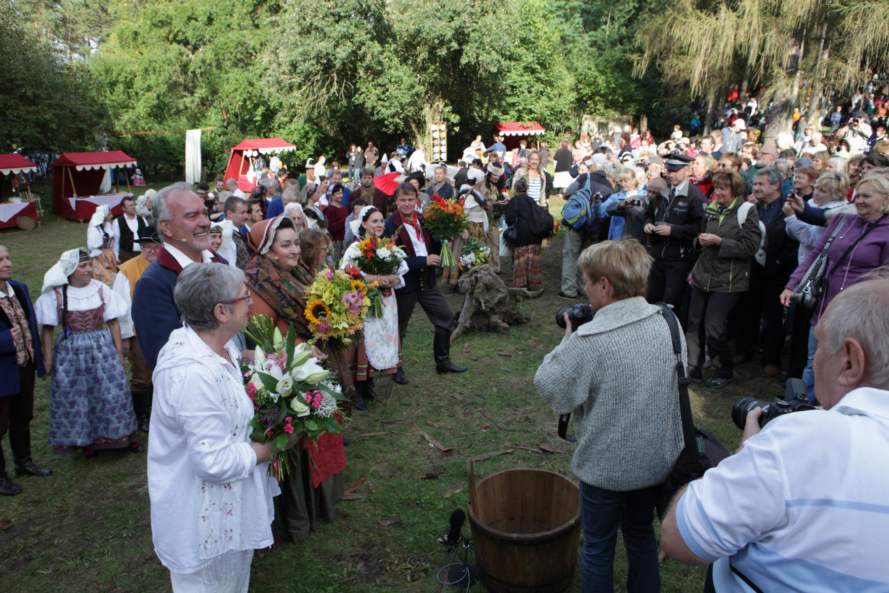 UVNITŘ ČLÁNKU VIDEOREPORTÁŽ - Praha, 1. 9. 2013 - Sté narozeniny přírodního divadla v Šárce přišel na představení Prodané nevěsty oslavit rekordní počet diváků. Podle policie přišlo do areálu přírodního divadla odhadem 16 tisíc diváků. Loni byl jejich počet cca 14 tisíc.