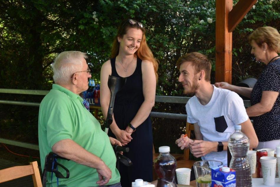 Zatímco na podzim a v zimě se většina společných aktivit odehrávala hlavně uvnitř domů s pečovatelkou službou, hezké počasí láká obě generace ven. K oblíbeným činnostem patří společné vycházky, někteří senioři si už netroufnou sami vyrazit dále od svého bytu, ovšem za doprovodu studentů zvládnou i hodinovou vycházku po šestce. Příležitost na popovídání i další seznámení poskytlo také květnové společné grilování na zahradě v Liboci.