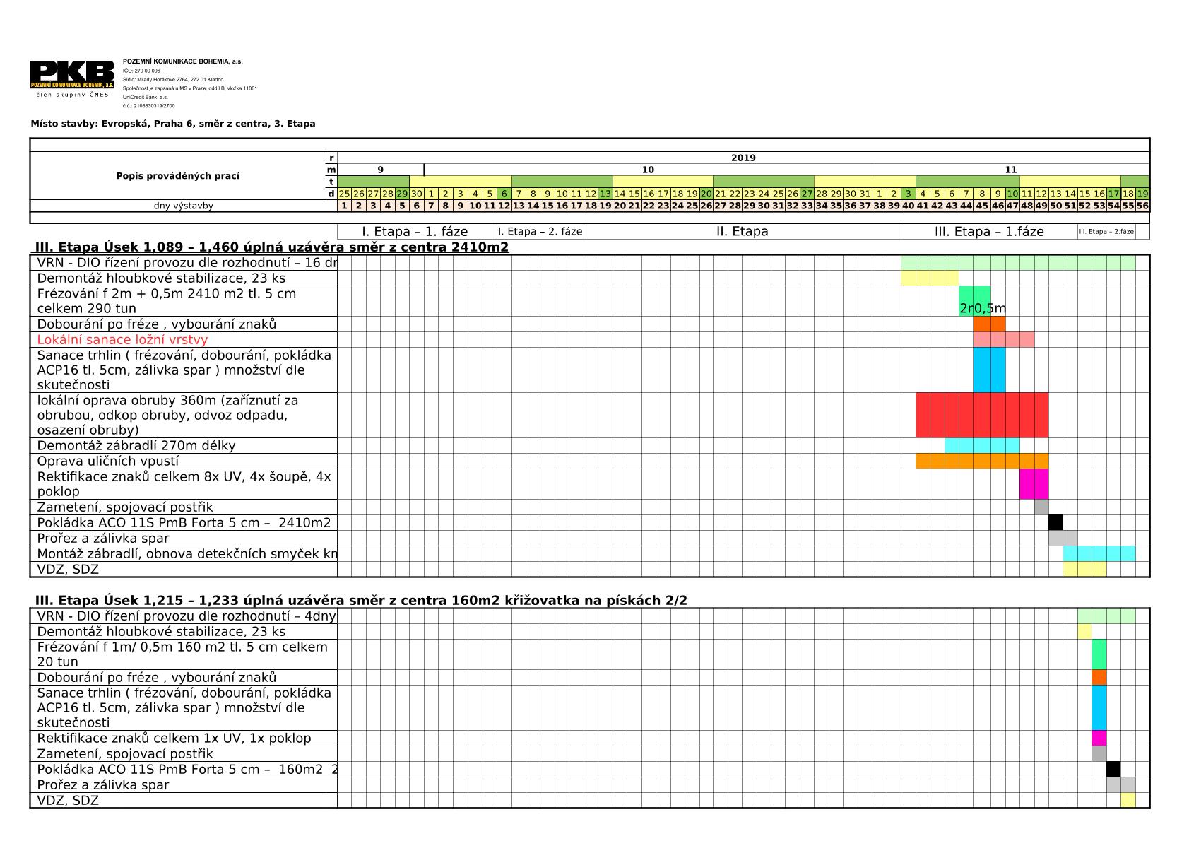 V sobotu 2. listopadu začaly práce na třetí etapě ve směru z centra (k letišti). V prvních 4 dnech odstraňovali pracovníci TSK měřící tyče nad prostorem metra. Bohužel to v tuto dobu vypadalo jako, že práce neprobíhají a je pouze uzavřená vozovka. Demontáž tyčí bude ovšem stavbu provázet vždy při zahájení každé etapy a není možné ji realizovat jinak než před frézováním vozovky. Se samotným frézováním vozovky III. etapy se začalo 7. 11. a konec této etapy je plánován na 18. 11. 2019. Nového povrchu se tentokrát dočká vozovka mezi ulicemi Na Sekyrce a Vilímovská. Řidiči v této etapě pojedou jedním jízdním pruhem vyhrazeným v protisměru.