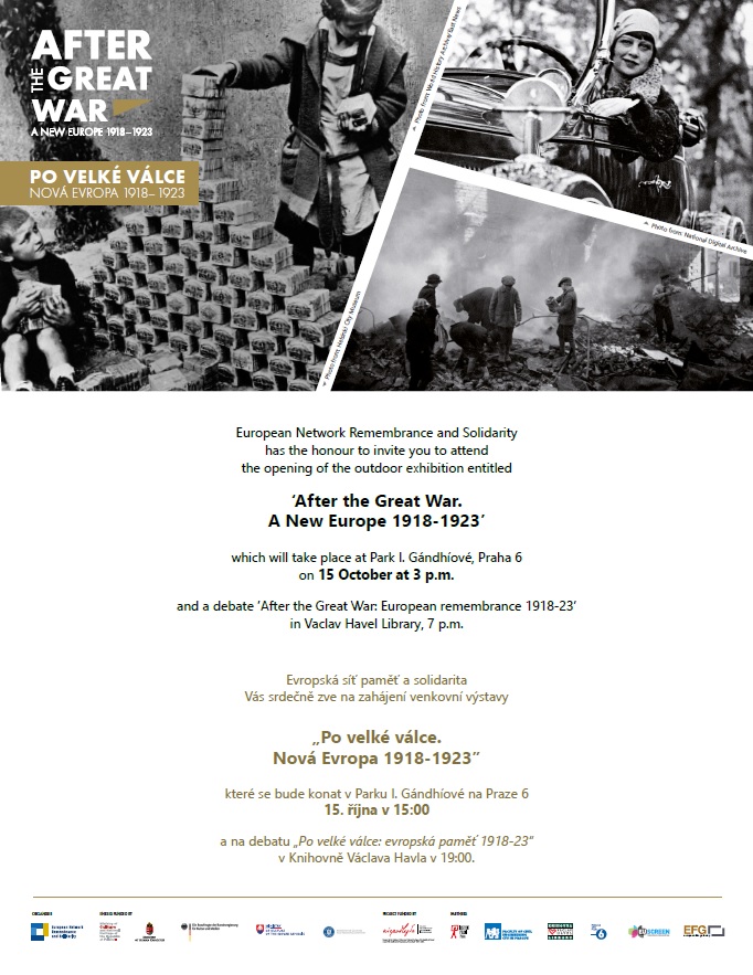 Evropská síť paměť a solidarita ve spolupráci s městskou částí Praha 6 a Fakultou stavební ČVUT srdečně zvou na venkovní výstavu „Po velké válce. Nová Evropa 1918-1923”, která bude k vidění před budovou v Kampusu Dejvice při ulici Thákurova.